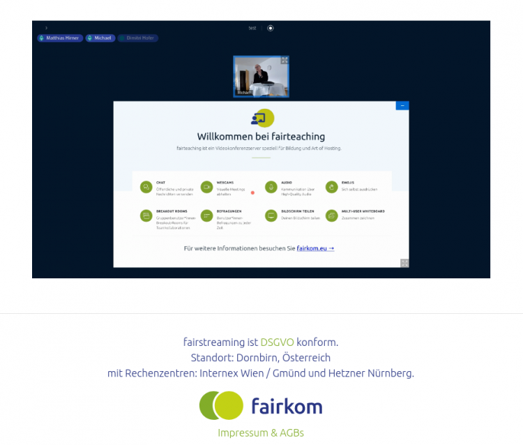 Ein Filmfestival liesse sich bis etwa 150 Zuseher*innen gut abwickeln über einen unserer fairteaching Server. Dort findet die Moderation statt oder kann ein Podium virtuell auftreten. Präsentationen können als PDF hoch geladen werden.
