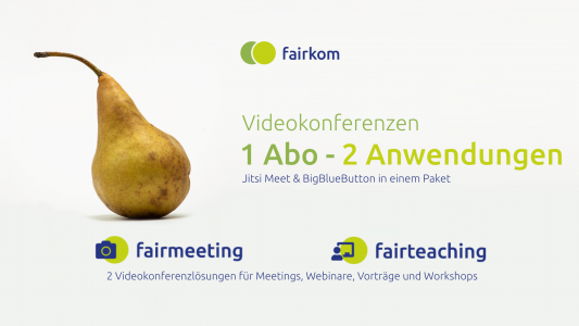 Jitsi Meet & BigBlueButton in einem Paket. Zwei Videokonferenzlösungen für Meetings, Webinare, Vorträge und Workshops. Mit unseren fairmeeting Paketen bieten wir mit einem Abo zwei datenschutzkonforme Lösungen für alle Bedarfe an.