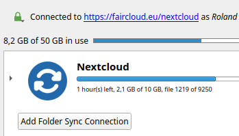 Wesentlich aufwändiger war die Migration der faircloud. Schon im Herbst 2020 hatten wir den Storage erweitert und nun auch die Maschine erneuert. Diese kommt von einer Serverbörse und ist nicht ganz neu, aber wesentlich leistungsfähiger als die bislang virtualisierte Maschine auf unserem zentralen heu Server. Damit einher geht auch eine neue Domain: die faircloud ist nun unter faircloud.eu erreichbar, der bisherige Zugang fairkom.net/nextcloud funktioniert ebenso weiterhin.