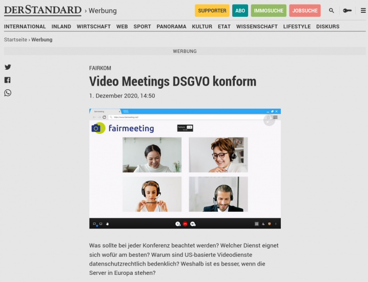 Und damit die Welt davon erfährt leisten wir uns eine Anzeige im Online Standard - auch weil wir gerne Qualitätsjournalismus unterstützen. Dieses Bekenntnis im Werbeartikel löste auch beim Team des Standard Resonanz aus: