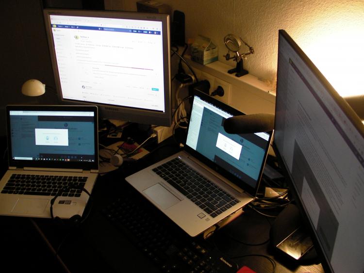 For BigBlueButton it seems we solved a tricky issue on sharing the camera by finally just extending a timeout. Together with BBB core developer Paulo we analyzed the routing behaviour with iOS devices in restricted networks and he got a solution. We had contributed code to BBB to allow audio sharing when playing video when sharing a screen and our developer Dennis is discussing the pros and cons of doing that client or server side. The latter is now available in BBB 2.3alpha8.